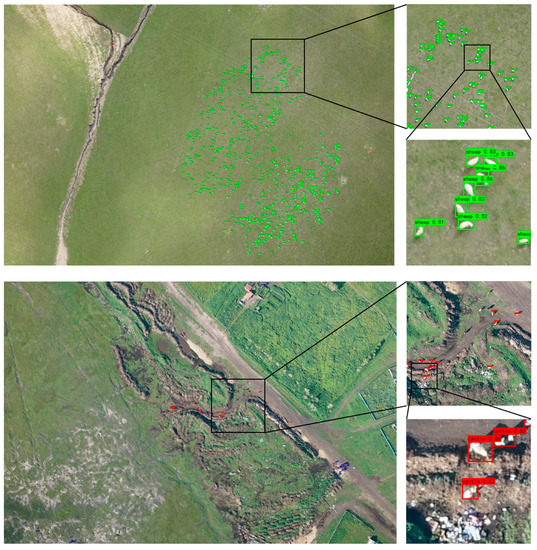 In this study, the grassland grazing livestock detection in UAV images was different from that in natural images taken on the ground and other objects’ detection of remote sensing images, which brings the following challenges to the algorithm design.