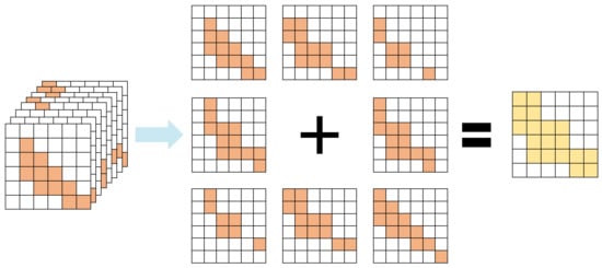 Seg-Road primarily comprises two segmentation branches: the regular semantic segmentation branch and PCS, which implement segmentation and connectivity detection for roads, respectively. The PCS is mainly involved in multi-task training and provides connectivity information to the model. However, to make full use of the information on the PCS prediction results, the final prediction results should be generated using the reverse derivation of the PCS prediction results, which is the inverse process of the PCS corresponding labels, as shown in the following Figure 6.