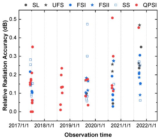 | Relative radiation accuracy | 0.1–0.2 s, <0.47 dB | <0.47 dB | <0.51 dB | 15 s, <1 dB; mission life, <3 dB |