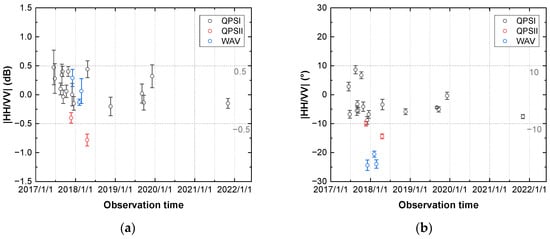 | Time | Mode | Beam | Orbit ID | |HH/VV| (dB) | ∠HH/VV (°) | |HV/VH| (dB) | ∠HV/VH (°) |