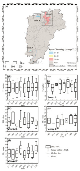 3.3. Spatio-Temporal Variations in OLI-Derived TLI