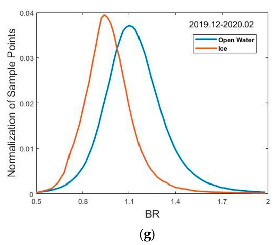 Figure 2 shows the normalized distribution of sea ice and open seawater in the Antarctic region for each parameter. These distributions are counted from December 2019 to February 2020 based on multisource scatterometer measurements.