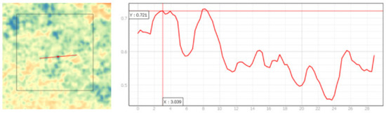 The classification was based on the analysis of different spectral paths on NDVI, in order to study their behaviour and differentiate the two types of cover of interest in the study area: pine seedlings and shrubland. This was carried out with the help of the “Profile Terrain” add-on, available for free in Qgis. Different NDVI values are obtained depending on the different spectral response of the study vegetation. The variation in NDVI in one of the study plots is shown in Figure 6, in which lower values are related to sparse vegetation cover, intermediate values to scrub and higher values to pine seedlings.