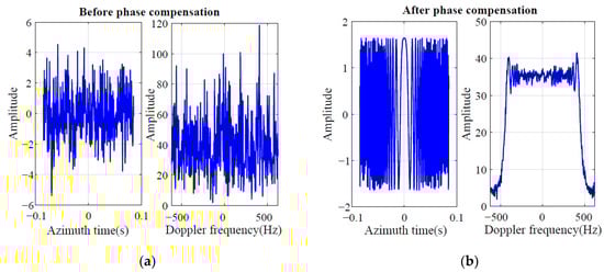The Doppler spectrum before and after phase compensation. (a) The Doppler spectrum before phase compensation. (b) The Doppler spectrum before phase compensation.