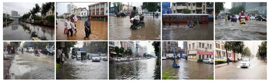 The dataset for this case comprised publicly available images. Through Google, Baidu, and other search engines, keywords such as “waterlogging” and “flooding” were searched, and pictures of waterlogging on public websites were obtained. Non-flooding photographs of cities were obtained by using search keywords such as “street” and “boulevard.” The dataset in this case was formed through manual screening.