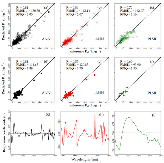 The effect of pre-processing on vis–NIRS calibration models differed depending on the dataset and modeling technique applied (Table 3). Improved model results after the application of pre-processing were reported only for the combined dataset modeled with PLSR. The applied pre-processing techniques included the 1st derivative and standard normal variate, which correct for baseline effects in spectra for the purpose of removing nonchemical effects and removing multiplicative interferences of scatter and particle size effects from spectral data, respectively [51]. Hermansen et al. [34] also reported improved PLSR results for Kd after the application of spectral pretreatments (2nd derivative) for a heterogenous dataset from New Zealand. In line with our findings, Paradelo et al. [30] did not improve the calibration results by applying pretreatment to their dataset collected from a single field. This indicates that the ANN technique can account for both baseline and multiplicative interferences present in the dataset representing a mixture of soil samples affected by different forming factors related to the geographic origin.