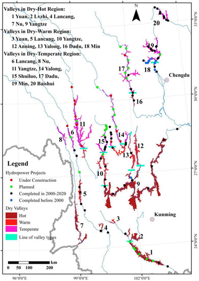 Geographical distribution of hydro-power projects in dry valleys of Southwest China.