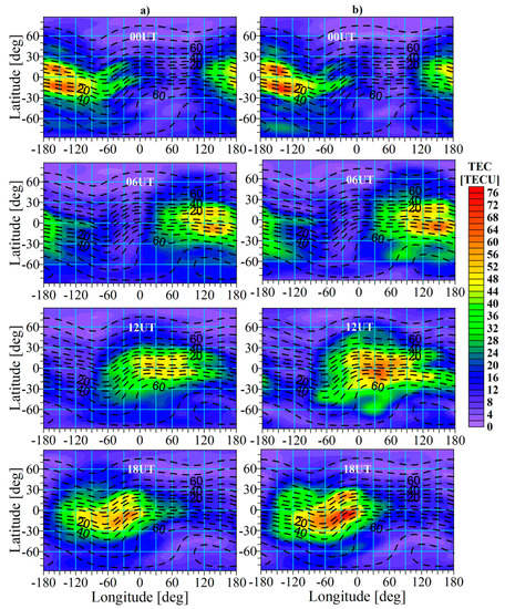 - Mukhtarov, P.; Andonov, B.; Pancheva, D. Global empirical model of TEC response to geomagnetic activity. J. Geophys. Res. Space Phys. 2013, 118, 6666–6685. [Google Scholar] [CrossRef]