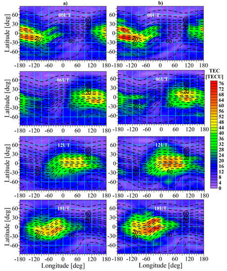 - Pancheva, D.; Mukhtarov, P.; Andonov, B. Global structure of ionospheric TEC anomalies driven by geomagnetic storms. J. Atmos. Sol. Terr. Phys. 2016, 145, 170–182. [Google Scholar] [CrossRef]