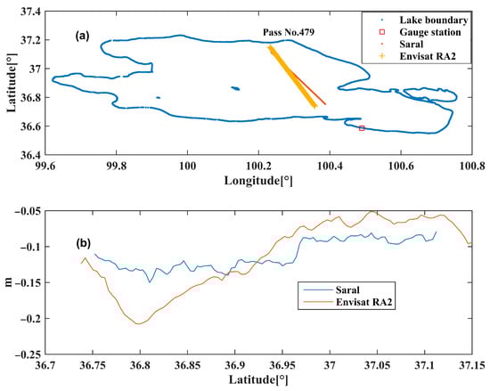 SARAL (Satellite with Argos and AltiKa) is a mission that was launched on 25 February 2013 by the Centre National d’Etudes Spatiales (CNES) and the Indian Space Research Organization. The SARAL satellite uses a Ka-band radar altimeter, which effectively reduces the influence of ionospheric changes on measurement. In the first 35 cycles, passes 94, 479, and 552 passed through LQ with a repetition period of 35 days. SARAL started to change to a drift orbit with an inclination of 98° in July 2016, and then, the passes passing through LQ were not fixed. A total of 323 tracks passing through LQ were obtained. The periodic water level variations in a lake can be obtained using data from the exact repeat mission (ERM) orbit stage, and the time resolution of lake level variations can be enhanced through the addition of data from the geodetic mission (GM) orbit stage, as well as more information about lake water level variations.