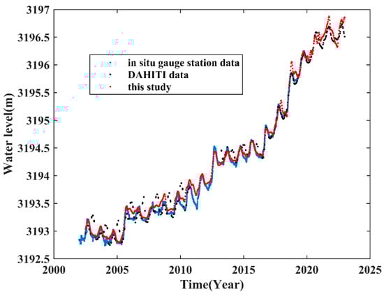 DAHITI (Database for Hydrological Time Series of Inland Waters, https://dahiti.dgfi.tum.de/ (accessed on 14 January 2023)) was established by the Technical University of Munich in 2013 [35]. The water level variation data for LQ were estimated using re-tracked data from Envisat (v3), SARAL (SGDR-F), Sentinel-3A (NTC), and Sentinel-3A (STC); the data cover LQ water level fluctuations from July 2002 to December 2022, and lack information from October 2010 to March 2013.
