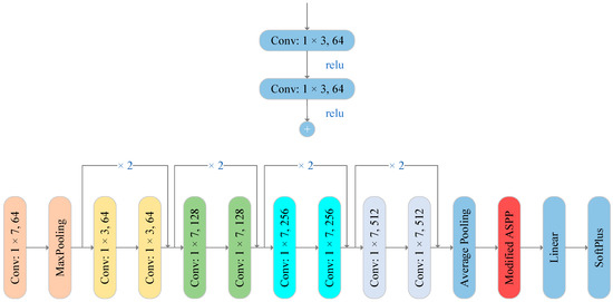For the AF view, 2D ResNet18 [26] is adopted as the backbone. A ResNet-like 1D network is designed for the backbone of the original waveform view, as shown in Figure 4. The feature extraction part is followed by a fully connected layer to output a predicted label.