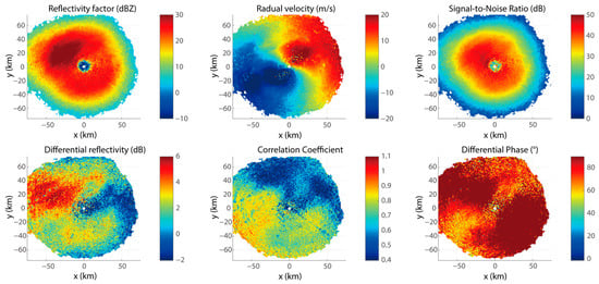 A dual-polarization weather radar is an advanced sensor with a high observation accuracy and many products. It can provide multiple products at the same time. The reflectivity factor (denoted by in dBZ) is the most conventional product in radar meteorology, which is a more meteorologically meaningful way of expressing the radar reflectivity . The radar’s property is independent of the radar’s wavelength in the case of small scatterers such as precipitation. The reflectivity factor is expressed as