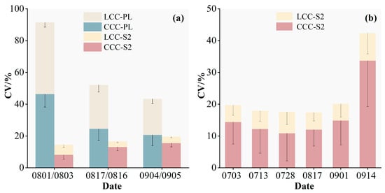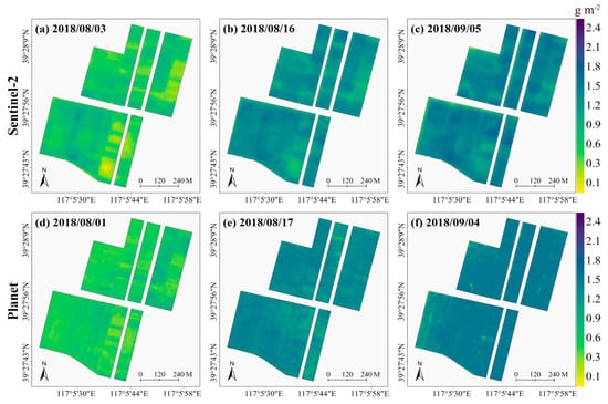 3.2. Multi-Period Maize LCC and CCC Spatial Mapping Using Sentinel 2 and Planet Images