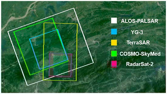 The experiment collected five high-resolution SAR images within the Xianning validation field range, and each image’s coverage area is shown in Figure 4. The detailed information of the SAR images used is summarized in Table 1.