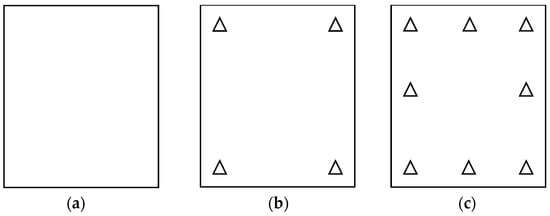 GCP-laid scheme: (a) no GCP, (b) four GCPs in corners, and (c) eight GCPs.