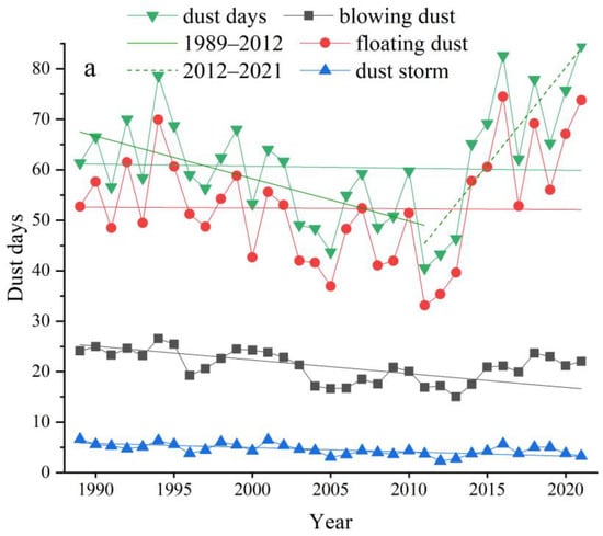 Frequency change of dust weather from 1989 to 2021.