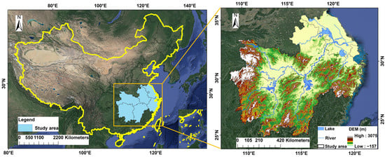 Water resources are important for aquatic and terrestrial ecosystems, urban development, agricultural production and socio-economics [,,]. As the main component of water resources, open-surface water bodies mainly include lakes, rivers, wetlands, reservoirs, streams, ponds and partially impounded paddy fields. They account for approximately 3% of the world’s land area and are an extremely important component of water resources required for human life and terrestrial ecosystems []. The Middle-Lower Yangtze Plain (MLYP) is very rich in water resources, and, in recent years, the implementation of national projects, such as the Three Gorges Project and the South–North Water Diversion, has had important impacts on the distribution of water resources. Moreover, the climate in the study area is variable, with seasonal precipitation and global warming leading to frequent droughts and floods. Therefore, monitoring the long-term dynamics of water bodies in the MLYP helps to understand the impact of climate change and human activities on the sustainable development of surface water resources in the region.