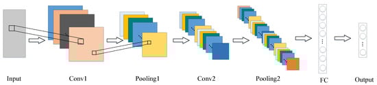 The input layer of the CNN can process multidimensional data. In the convolutional layers, convolutional kernels can extract features from the input data, and the activation function can make it easier to express complicated features. The convolution operation can be expressed as [41]