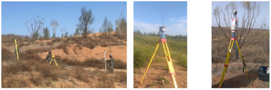 The field measured values for verification of the proposed method are obtained from the leveling and GNSS technology. Images from the field study are shown in Figure 2.