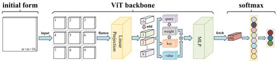 The vision transformer’s architecture is shown on the left and the encoder block’s specifications are shown on the right. The input image is first divided into patches. These are then projected (after flattening) into a feature space, where a transformer encoder analyzes them to create the classification output. * indicates to Extra learnable [class] embedding. Adapted with permission from [1,19].