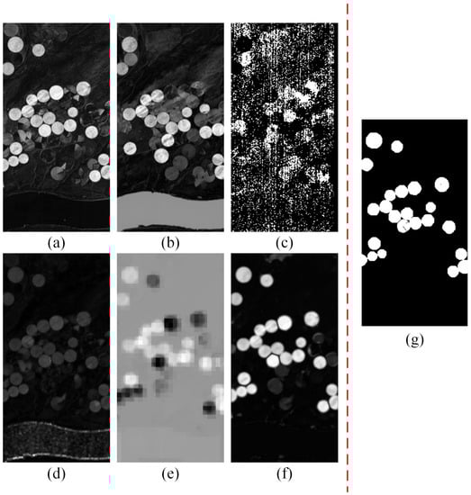 Gray results of different methods on the River dataset. (a) CVA. (b) PCA-CVA. (c) IR-MAD. (d) DCVA. (e) CAMF. (f) UTBANet. (g) Ground truth.