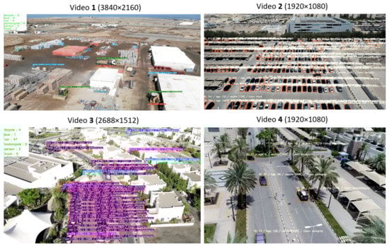 - video 1: showing six classes (car, person, bicycle, bus, monocycle, and truck), with an average of six objects per frame, an input resolution of 3840 × 2160, a length of 50 s, and an FPS of 30.