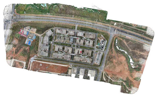 AirLoc: AirLoc [44] is a large urban dataset built from the multi-sensor acquisition. We test our approach on the laser-scanned part, which is highly detailed 3D point cloud data gathered by Airborne LiDAR that represents the surface of an outdoor area in Changsha city. AirLoc was gathered by a DJI M300 (https://www.dji.com/cn/matrice-300, accessed on 23 Match 2023), carried DJI L1 (https://www.dji.com/cn/zenmuse-l1, accessed on 23 Match 2023) laser scanner and contained about 400M points, approximately 640,000 m. The data provides a highly detailed view of the terrain and any objects, containing different natural and artificial scenarios such as buildings, roads, plants, etc. We visualize the laser-scanned map in Figure 3. The whole laser-scanned map is used to evaluate our model, split into submaps at fixed intervals of 100 m and resulted in 60 test submaps.
