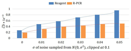 Additionally, we quantitatively demonstrate the robustness of our approach to different levels of noise-afflicted data. Random noise is sampled from N(0, 0.01), clipped to different margins and applied to the point clouds. We report the improved accuracy across the chamfer distance, as shown in Figure 8. By introducing different levels of noise and comparing the resulting chamfer distances, we gain insight into the robustness of our approach to noise.