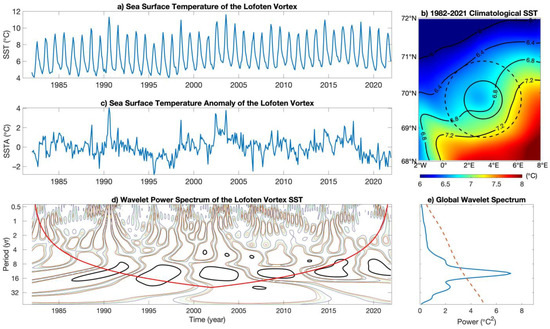 Figure 8c). Wavelet analysis was performed for the residual SST time series. We used the “DOG” wavelet as the wavelet basis function. The highest energy intensity is shown by black isolines. The wavelet power spectrum shows that the time series of the SST covers a significant period of 8–16 years (