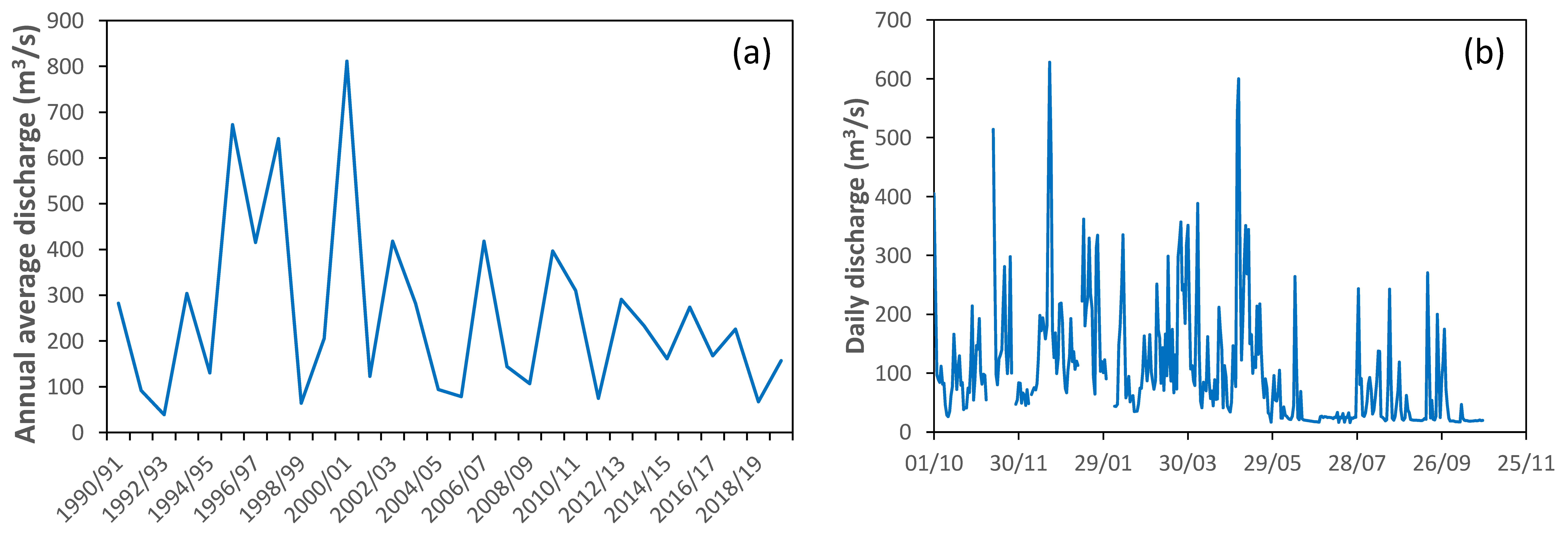 - Mezger, G.; De Stefano, L.; González del Tánago, M. Analysis of the Evolution of Climatic and Hydrological Variables in the Tagus River Basin, Spain. Water 2022, 14, 818. [Google Scholar] [CrossRef]