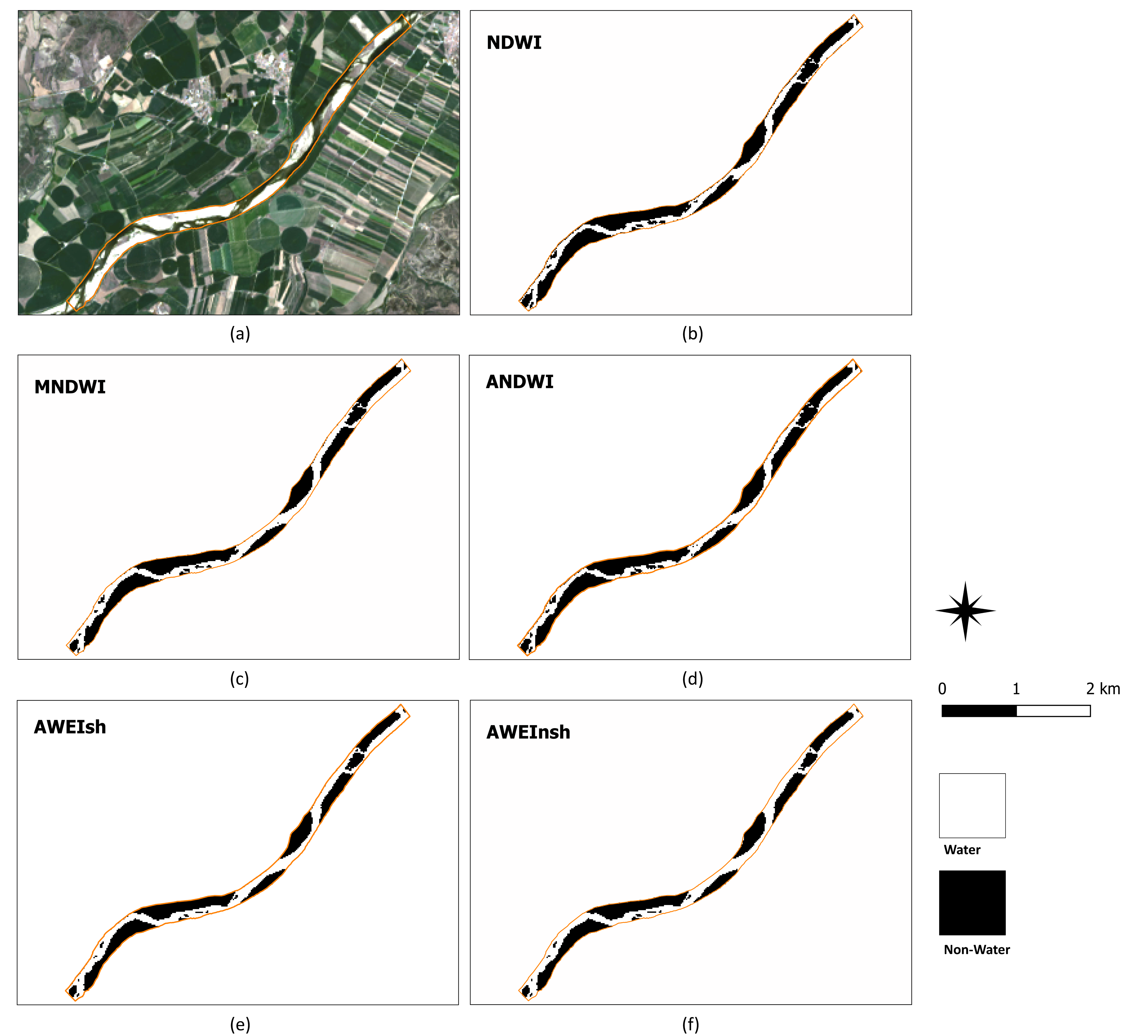 - Fisher, A.; Flood, N.; Danaher, T. Comparing Landsat water index methods for automated water classification in eastern Australia. Remote Sens. Environ. 2016, 175, 167–182. [Google Scholar] [CrossRef]