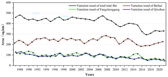 Statistics of total tidal flat area in Beibu Gulf, 1987–2021.