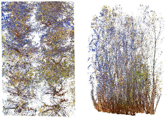 - Puletti, N.; Grotti, M.; Ferrara, C.; Chianucci, F. Influence of voxel size and point cloud density on crown cover estimation in poplar plantations using terrestrial laser scanning. Ann. Silvic. Res. 2021, 46, 148–154. [Google Scholar] [CrossRef]