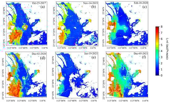 - Chen, C.; Shi, P.; Yin, K.; Pan, Z.; Zhan, H.; Hu, C. Absorption Coefficient of Yellow Substance in the Pearl River Estuary. In Ocean Remote Sensing and Applications; SPIE: Bellingham, WA, USA, 2003; Volume 4892, pp. 215–221. [Google Scholar]