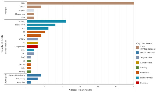 Overview of the QEs examined by the studies included in this review. Others are mostly biological water quality indicators and indices (e.g., DIN, DIP, macroalgal, NDWI, etc.).