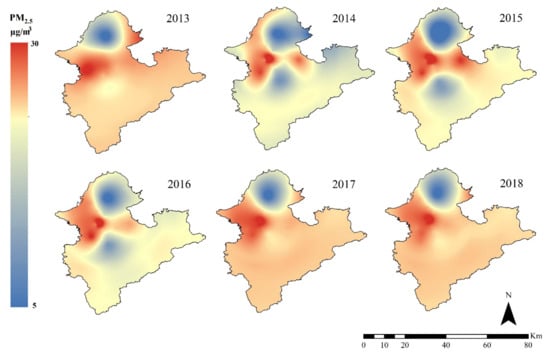 Prediction maps of the spatial–temporal variability of PM2.5 concentration using the developed model.
