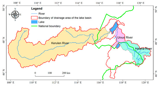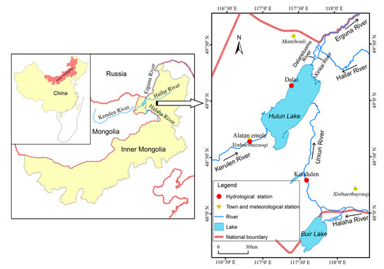 Hulun Lake (also called Dalai Lake) is the largest lake in northern China and is located in the hinterland of the Hulun Buir grassland. The Hulun Buir grassland is a high-quality natural pasture and an important animal-husbandry production base in China. The water resources of Hulun Lake have an important impact on the local ecology and economy. The main rivers entering the lake span Mongolia and China, with a large basin area, and the relevant data are not systematic and are difficult to collect. So far, several studies have been conducted on the area, water level, and water volume of Hulun Lake.