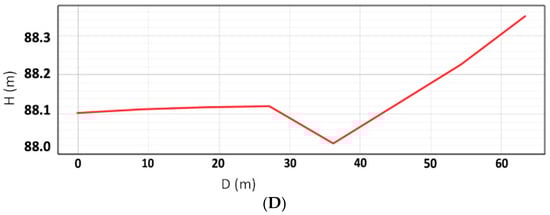 To highlight some correspondence between the surface morphology and the survey carried out at sites, comparisons were made with the Reference Digital Elevation Model of Antarctica REMA [40] along the profiles having the same horizontal directions as the control point (Figure 11).
