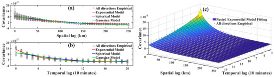 | Type/Parameters | Covariance vs. Spatial Lag | Covariance vs. Temporal Lag | ||||