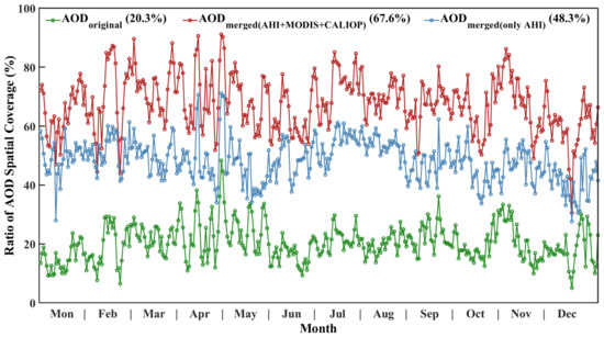 - Yang, J.; Hu, M. Filling the missing data gaps of daily MODIS AOD using spatiotemporal interpolation. Sci. Total Environ. 2018, 633, 677–683. [Google Scholar] [CrossRef] [PubMed]