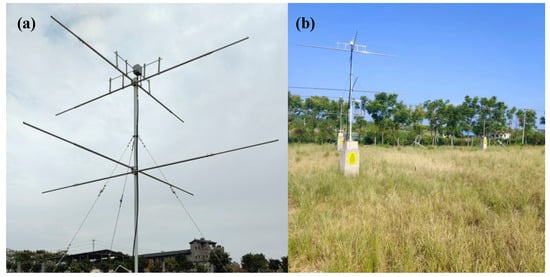 Polarization is a fundamental property of electromagnetic waves, and it describes the orientation of the electric field vector relative to the Earth’s surface. A polarized antenna is designed to receive or transmit electromagnetic waves with a specific polarization. The use of polarized antenna can reduce interference and increase the signal-to-noise ratio (SNR) of the received signal [4,5]. Considering the polarization matching condition, circularly polarized transmit antenna and receive antenna are designed and applied in most meteor detection radar systems [6]. Circularly polarized (CP) antennas are usually preferred owning to the immunity against multipath fading [7]. They can receive circularly and linearly polarized waves and can be used in many wireless communication systems, including broadcasting services, satellite communications [8], mobile communications [9], global navigation satellite systems (GNSS) [10] and detection radars [6,11].