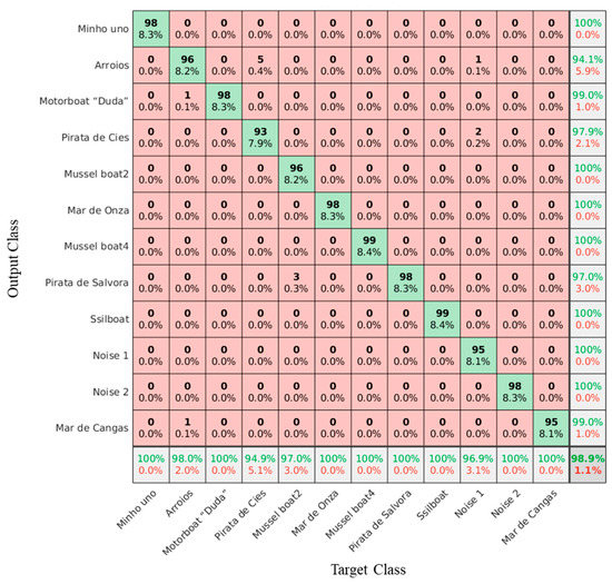 N denotes the total number of specific noises. The Softmax classifier calculates the probability of each class and normalizes all exponential probabilities. The highest prediction probability is chosen as the recognition result of the network.