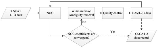 Note that the MLE value changed with the calibrated σ0s, so an iterative approach (see Figure 3) was carried out to update the calibration coefficients until they converged. Finally, the L2 product of the last iteration was recorded as the reprocessed wind product.