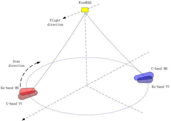 FY-3E (Fengyun-3E) was launched on 5 July 2021 and is part of the Chinese FY-3 meteorological satellite series. It is in a near-polar, sun-synchronous orbit, and it is equipped with 11 remote sensing instruments. Being in an early morning orbit, it contributes to the temporal coverage of polar satellites. Together with FY-3C, FY-3D, and other international meteorological satellites, FY-3E helps to provide coverage of the daily cycle, which is beneficial for numerical weather prediction (NWP), climate studies, and environmental science []. Our focus in this paper is on the wind scatterometer instrument called WindRAD (Wind Radar) on board FY-3E. Currently, there are three types of scatterometers in orbit: fixed fan-beam (e.g., ASCAT-B/C (Advanced Scatterometer) on Metop) [], rotating pencil-beam (e.g., HY-2 B/C/D (HaiYang-2), EOS-06/Oceansat-3 from ISRO) [,], and rotating fan-beam (CSCAT (CFOSAT Scatterometer)) [,] scatterometers. WindRAD belongs to the rotating fan-beam category with horizontal HH and vertical VV polarization; the difference between WindRAD and CSCAT is that WindRAD is the first dual-frequency (C-band at 5.40 GHz and Ku-band at 13.256 GHz) rotating fan-beam scatterometer, whereas CSCAT is Ku-band only. The incidence angle range for C-band is between 33.0 and 47.0, and for Ku-band it is between 36.5 and 44.0. The rotating fan-beam design of WindRAD leads to a very diverse geometry of view azimuth and incidence angles across the swath, and because of the dual frequency feature, the number of views in each WVC (Wind Vector Cell) increases significantly in comparison with CSCAT. These interesting data characteristics have a significant impact on the methods for calibration and on the quality of the wind retrievals.