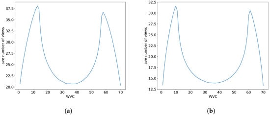 Average number of views as a function of WVC: (a) C-band HH and VV beams. (b) Ku-band HH and VV beams.