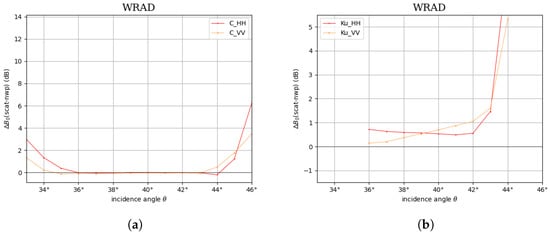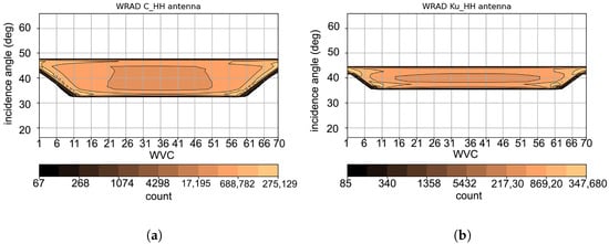 Incidence angle distribution as a function of WVC: (a) C-band HH. (b) Ku-band HH.