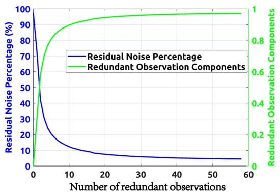 Relationship between the residual noise percentage and the number of redundant observations.
