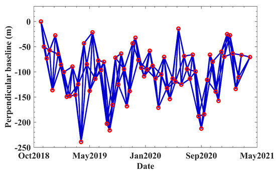In multi-temporal InSAR technology, two strategies are usually employed to improve the density of monitoring points. The first is to use spatiotemporal filter technology to improve the phase stability [11], and the second is to select appropriate interferometric SAR pairs to mitigate the effects of phase decorrelation [8].
