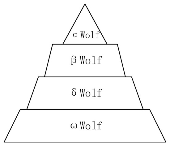 Grey wolves are social animals and have a very strict social hierarchy, as they rely on a clear division of labor and mutual cooperation for survival. According to the habits of the grey wolf, their population can be divided into four levels to conduct mathematical modeling of their hunting technology, as shown in Figure 2.